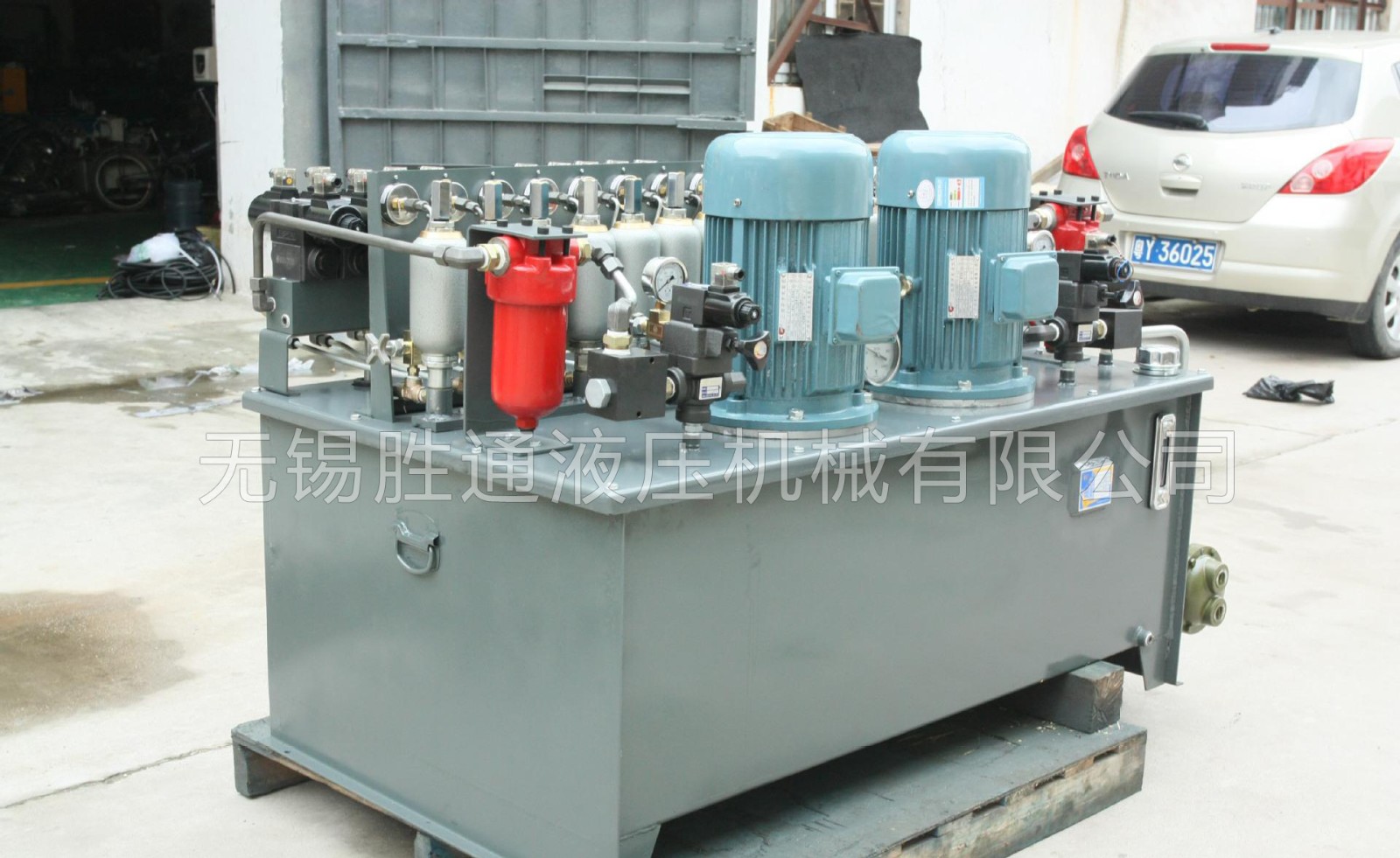 液壓站是由液壓泵、驅(qū)動用電動機、油箱、方向閥、節(jié)流閥、溢流閥等構(gòu)成的液壓源裝置或包括控制閥在內(nèi)的液壓裝置。按驅(qū)動裝置要求的流向、壓力和流量供油,適用于驅(qū)動裝置與液壓站分離的各種機械上,將液壓站與驅(qū)動裝置(油缸或馬達(dá))用油管相連,液壓系統(tǒng)即可實現(xiàn)各種規(guī)定的動作。